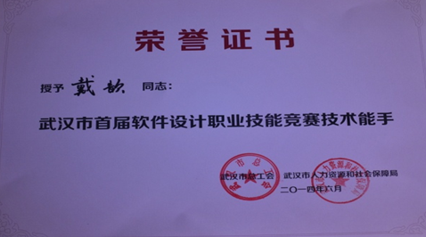 信息工程系戴歆、陈惠敏两名教师在在100多名参赛选手中脱颖而出,分别荣获了软件设计第2名和第11名的好成绩。同时戴歆同志获武汉市首届软件设计职业技能竞赛二等奖及技术能手称号。