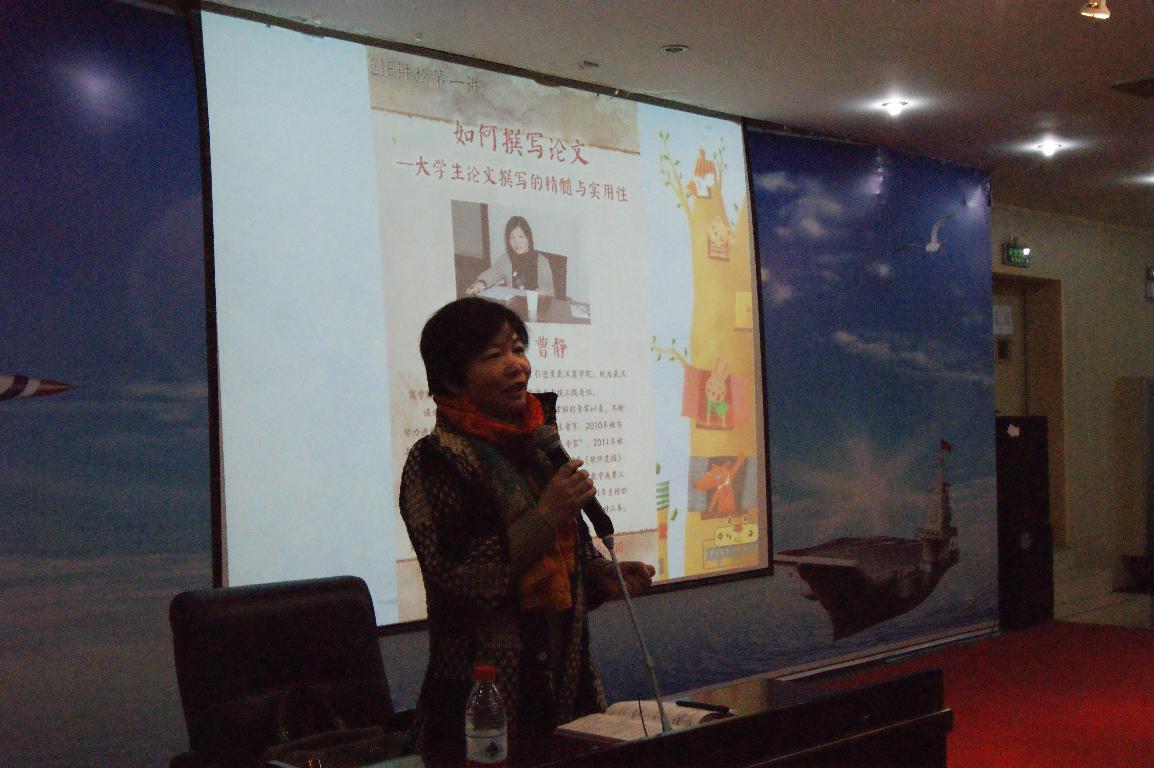 “创e讲坛”第一讲,曹静教授围绕如何撰写论文,以其专业的目光及自身丰厚的学识为在场的同学讲述了大学生论文撰写的精髓与实用性。在授课过程中,曹静教授主要提到了以下几点: