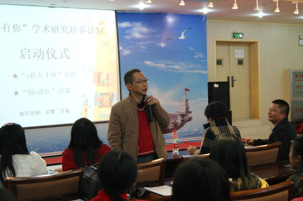 周天宏主任在启动仪式上表示:“希望‘e路有你’在同学们今后的生活中开花结果。”罗璇老师也对同学们参加“e路有你”活动的积极性给予了高度肯定。最后,在“e群人才”班班主任——姜攀老师的解说以及祝福下,启动仪式落下帷幕。同时,“创e讲坛”第一讲也正式开始。