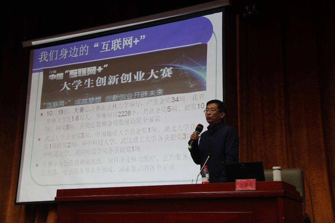 2015年11月18日晚18点半,信息工程系创e讲坛第三讲在图书馆报告厅顺利举办。讲坛邀请到武汉理工大学教学名师王舜燕教授,以“移动互联网时代,我们身边的‘互联网+’”为主题为我们开展了一场别开生面的讲座。