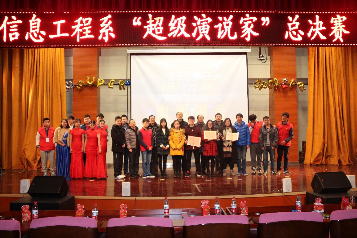 2015年 12月24日中午,“超级演说家”2015年度总决赛于武汉商学院图书馆报告厅举行。本次活动是由信息工程系分团委学生会主办、信息工程系特研会承办。出席本次大赛的有武汉市德发电子信息有限责任公司董事长黄进先生、现代教育中心程满玲老师、武汉商学院校团委江倩老师、机电工程与汽车工程学院向俊老师、工商管理学院施卫东书记、信息工程系高福海书记、周天宏主任以及各学生代表等。