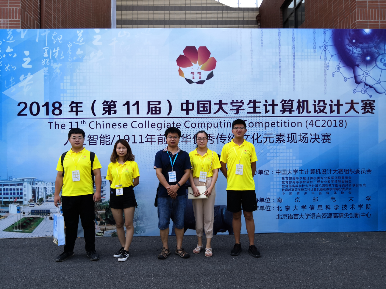 2018年8月1日,由亓相涛老师带队,飓风-溯光队成员四名同学到达南京参加国赛,来到南京邮电大学2018年(第11届)中国大学生计算机设计大赛人工智能/1911年前中华优秀传统文化元素决赛现场,在经历了开幕式和作品展示之后,他们的作品微电影《樊冬》荣获2018年(第11届)中国大学生计算机设计大赛国家三等奖!