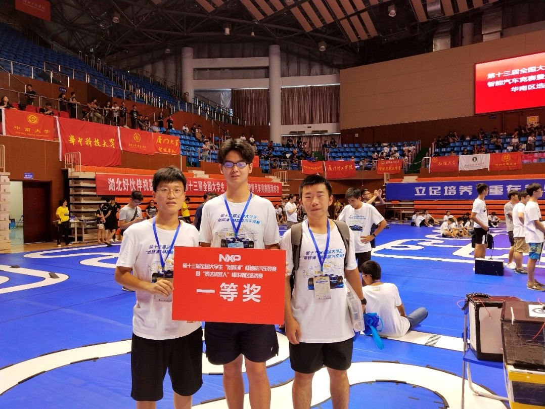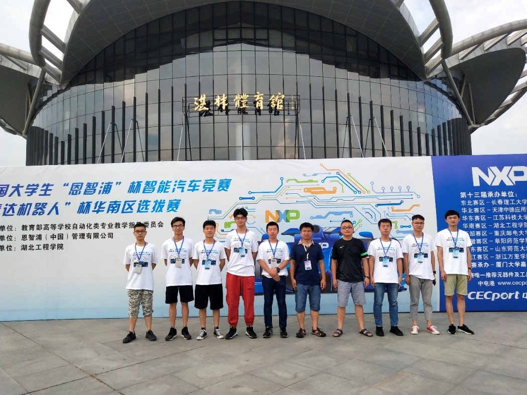2018年7月26日-7月29日,黑瓜网每日大赛反差亓相涛、刘佳老师带领学生在湖北工程学院参加第十三届全国“恩智浦”杯智能汽车竞赛,学生:彭钲皓、杨康、丁扬参加的电磁三轮组在华南赛区获得一等奖。
