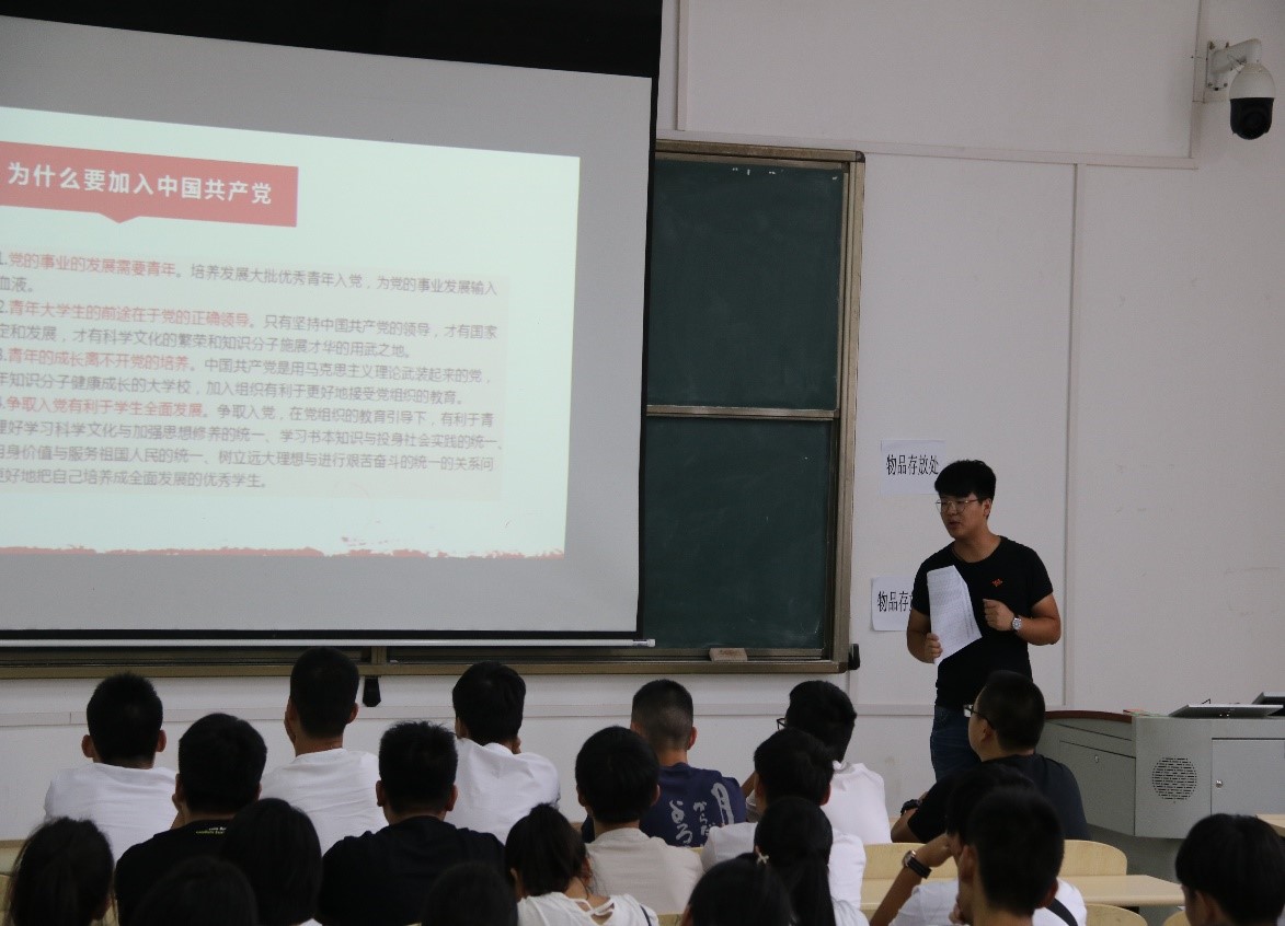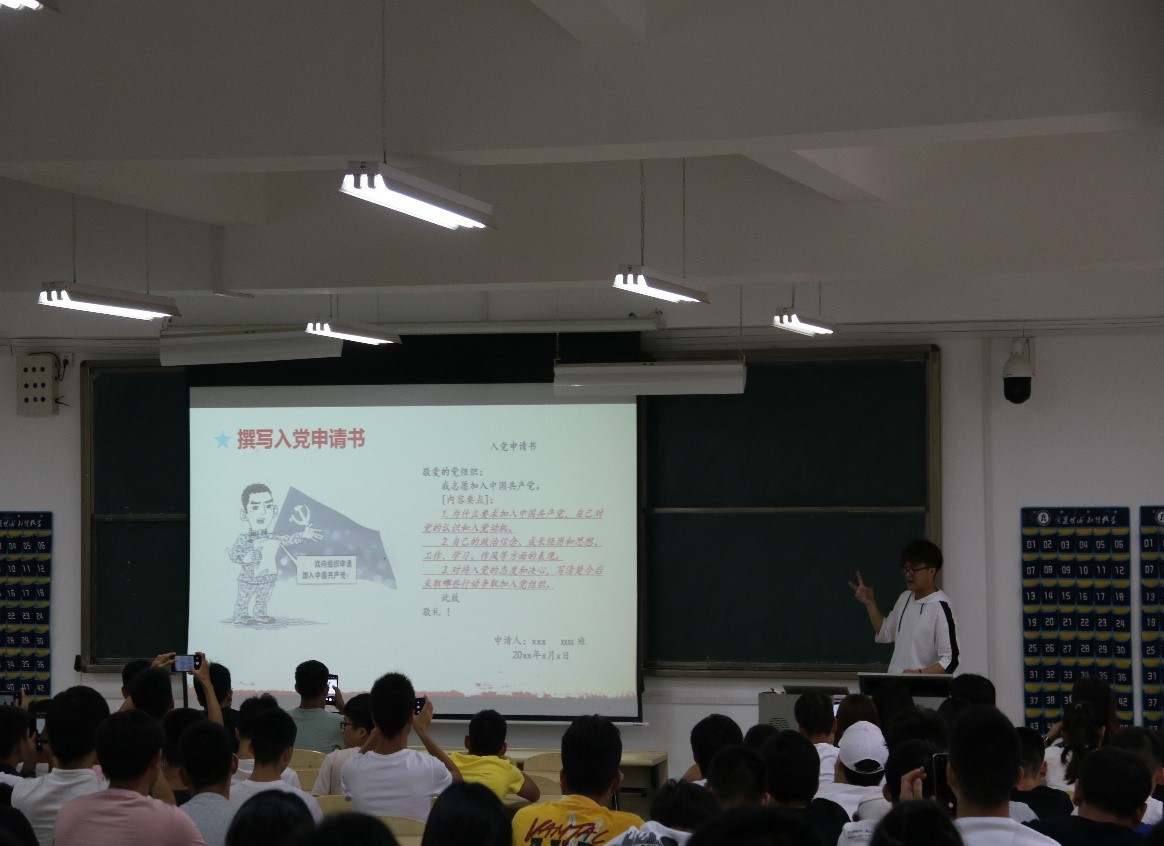 2018年9月7日下午,两场特别的讲座在北四118教室和202教室如期举行。黑瓜网每日大赛反差学生党员郑少微同志和肖晨亮同志分别担任两场讲座的主讲人。他们以“早日站在党旗下”为主题,结合自己以及其他优秀学生党员的经历,与在场新生交流了中国共产党是什么样的组织、大学生为什么要加入中国共产党、如何加入中国共产党。两位优秀学生党员希望广大新生要树立远大理想、端正入党态度、积极提升自我,以实际行动努力向党组织靠拢,争取早日成为爱党爱国的有用之才。新生们听得聚精会神,讲座结束时,教室里响起了热烈的掌声。