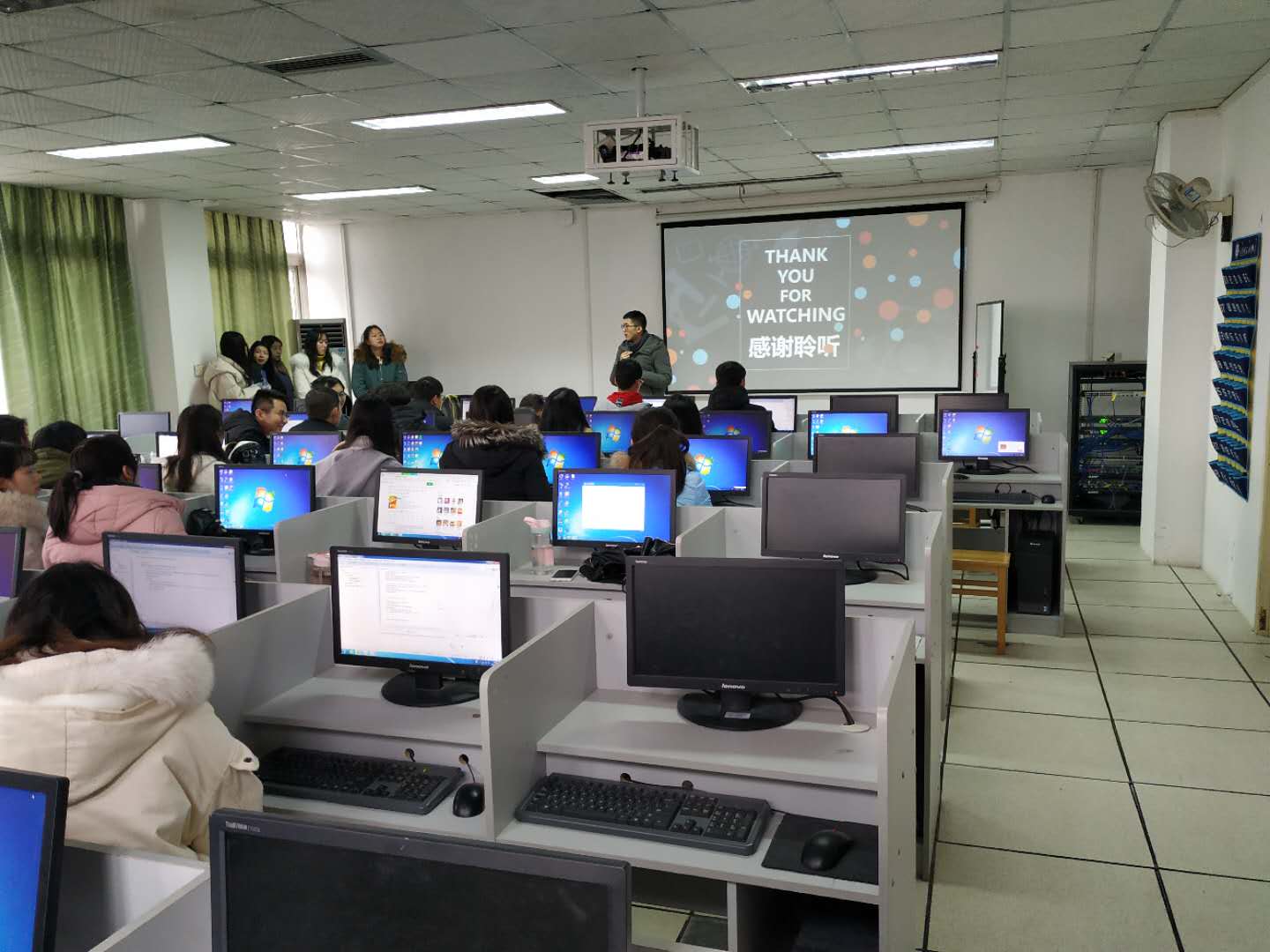 2019年1月7日——1月12日,16软件工程专业和17数字展示技术专业的学生进行期末综合实训。此次培训采用了校企合作模式,聘请了武汉极客营信息技术有限公司和武汉达内时代科技集团有限公司的教师来给我院学生指导实训。本次实训引入企业化的项目设计,让学生能够全面、深刻地掌握JAVA、TOMCAT、MYSQL、NETBEANS系统的设计流程。学生以小组为单位,结合具体的项目需求,使用SSM框架相互结合,最终开发出一个较为实用的超市管理系统和一个网上商城应用系统。
