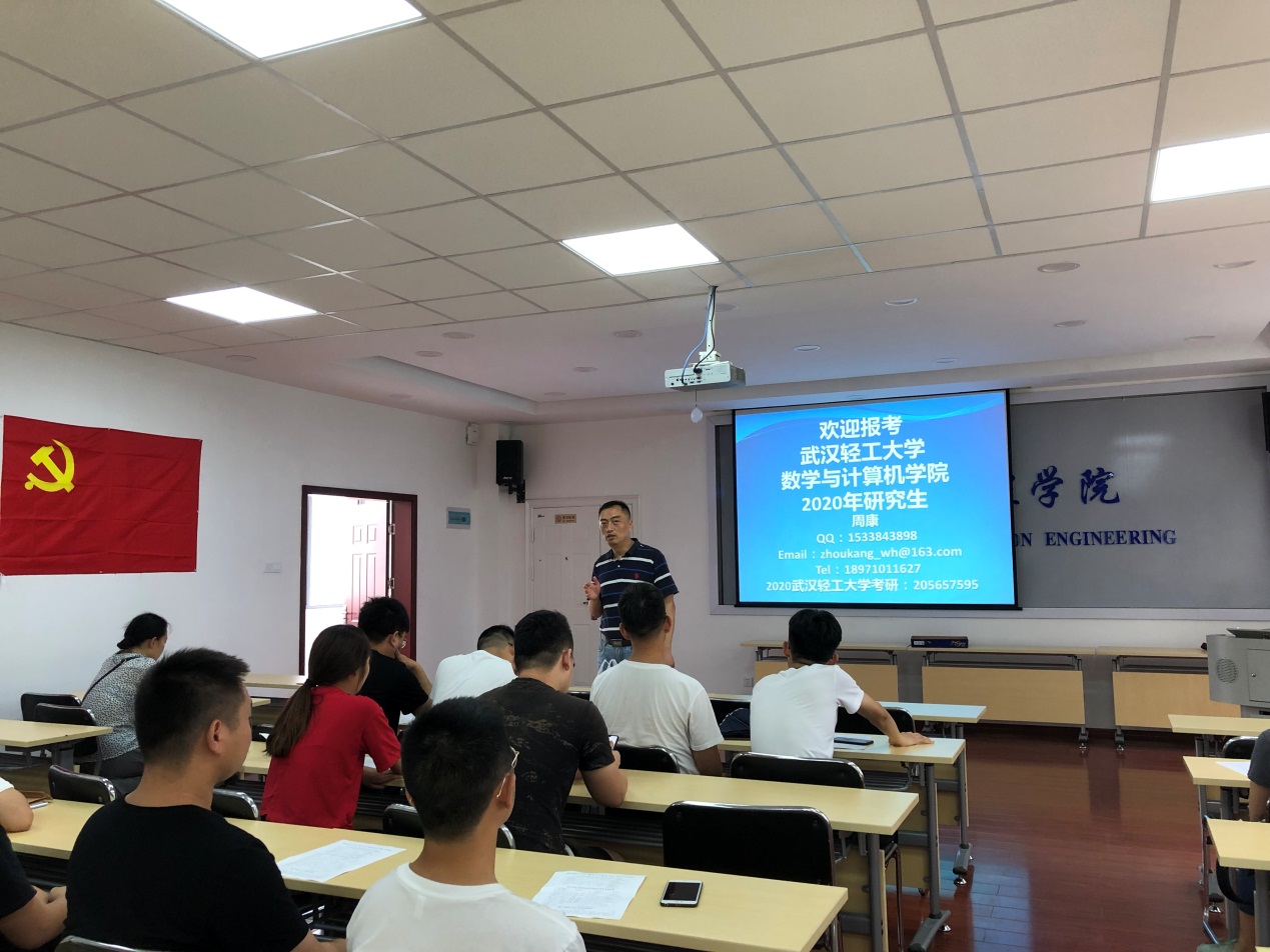 2019年6月26日14:00,我院在南二401举行考研宣讲会。本次宣讲会邀请到了武汉轻工大学数学与计算机学院副院长周康教授。
