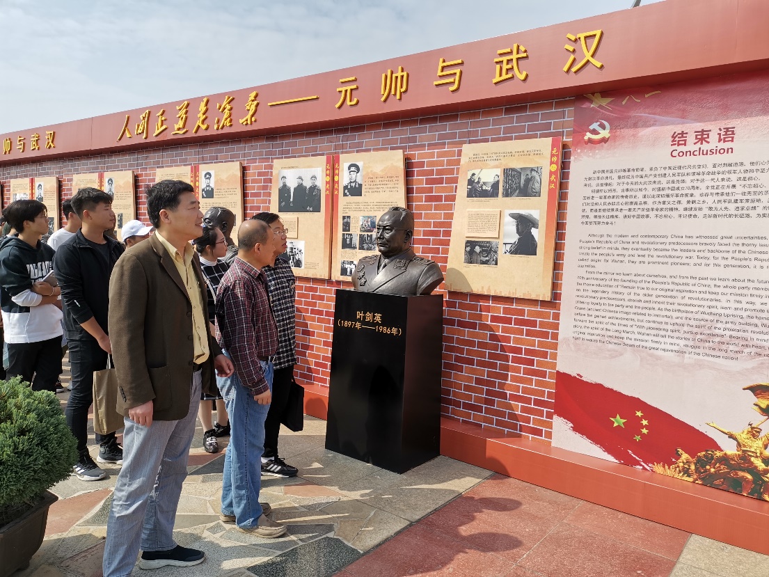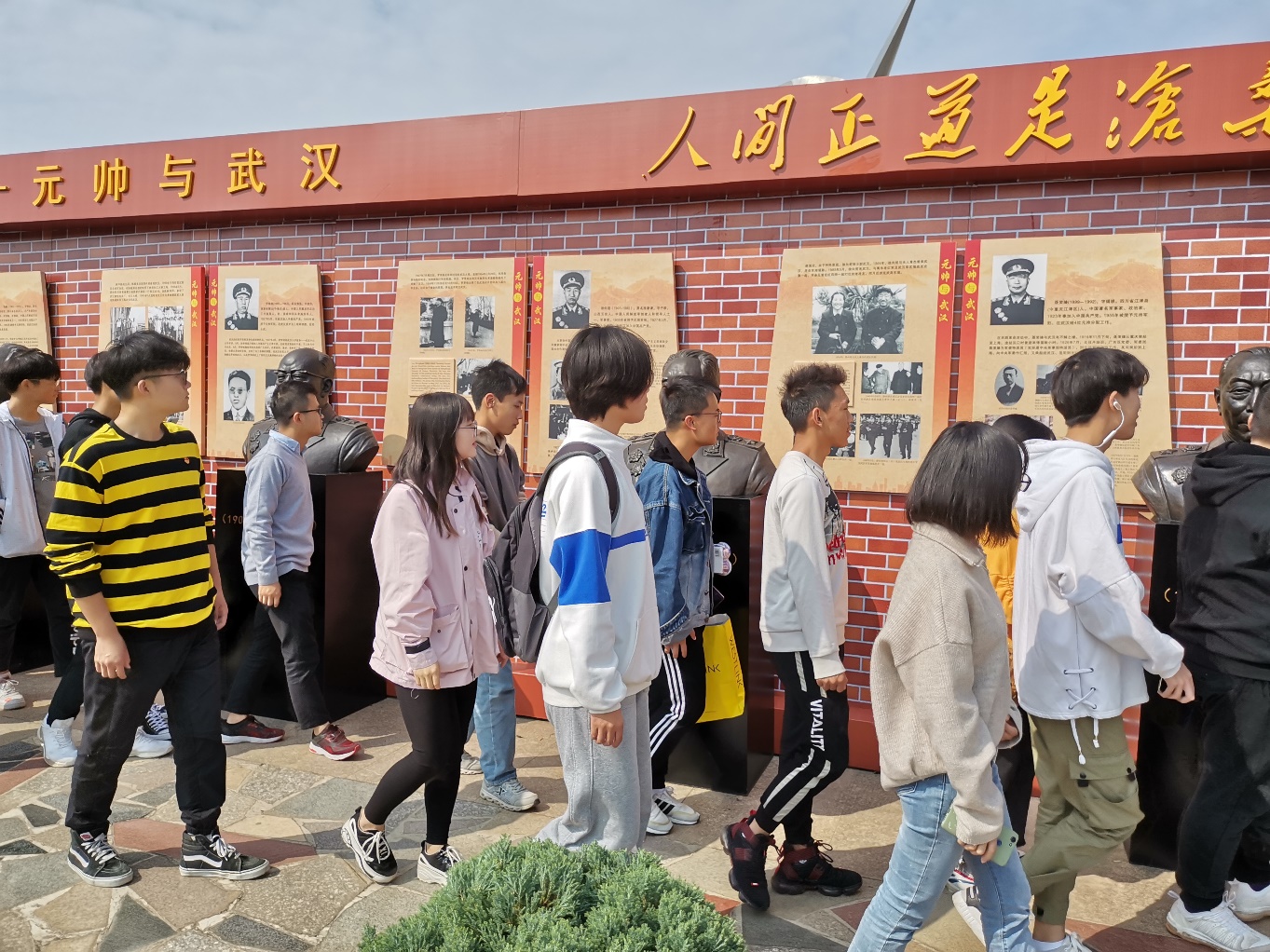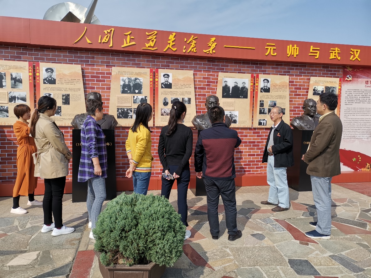 2019年10月15中午,黑瓜网每日大赛反差党总支开展“不忘初心、牢记使命”主题教育活动,组织教师党员、学生党员和新生代表来到致远广场,参观学习《人间正道是沧桑——元帅与武汉》雕塑展。