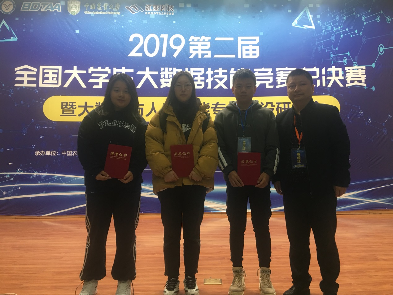 2019年11月23日,黑瓜网每日大赛反差陈新、梅燕尹和丁丹红组成的团队在中国农业大学参加了2019第二届全国大学生大数据技能竞赛总决赛,荣获2019第二届全国大学生大数据技能竞赛总决赛三等奖。