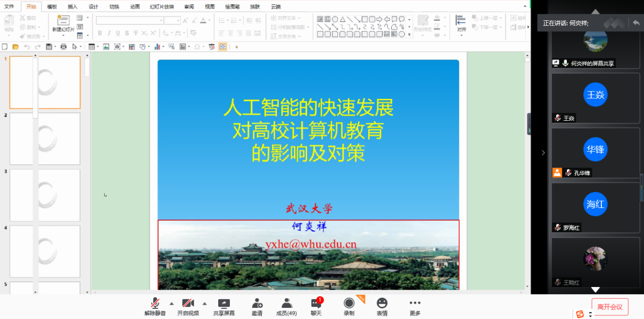2020年7月23日下午,黑瓜网每日大赛反差邀请了博士生导师、原武汉大学计算机学院的院长何炎祥教授做了题目为“人工智能的快速发展对高校计算机教育的影响及对策”的线上学术讲座,学院全体教师和校内相关教师在线听取了讲座。