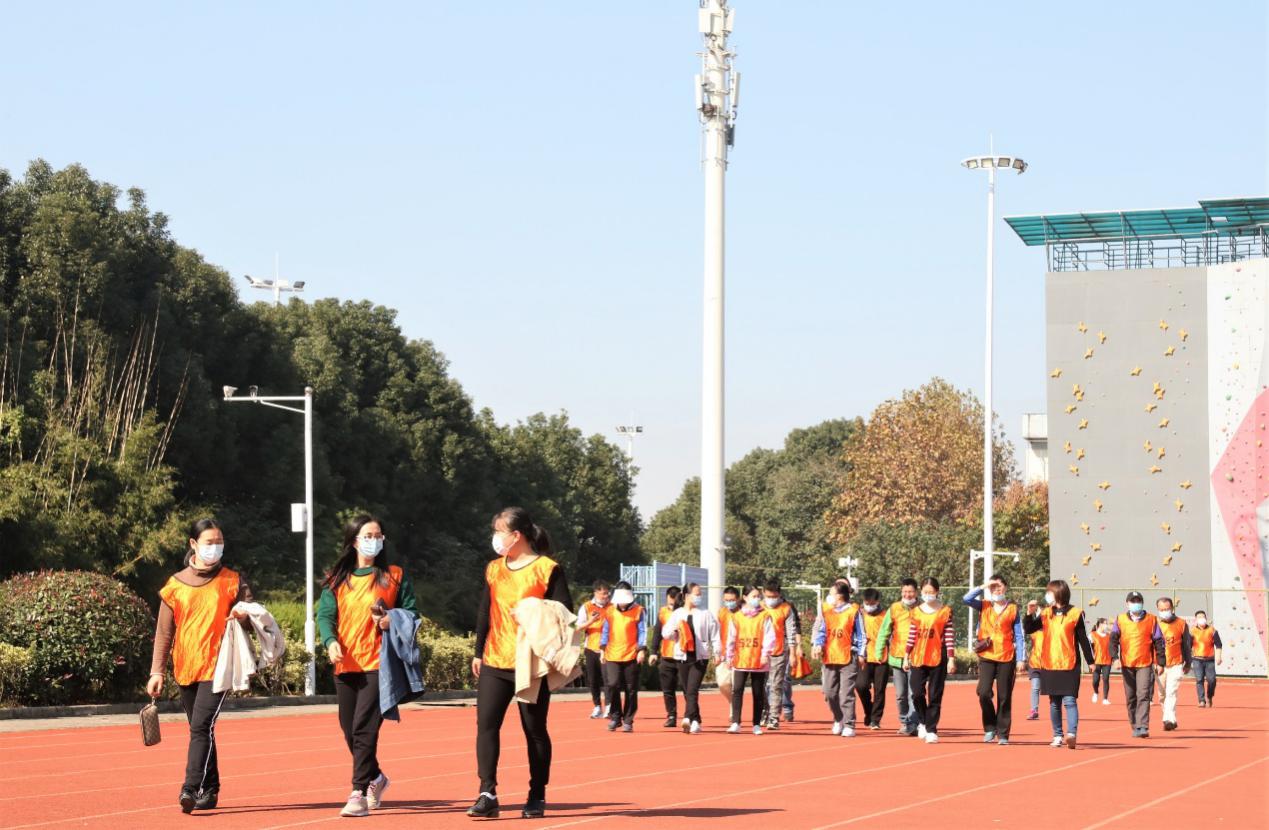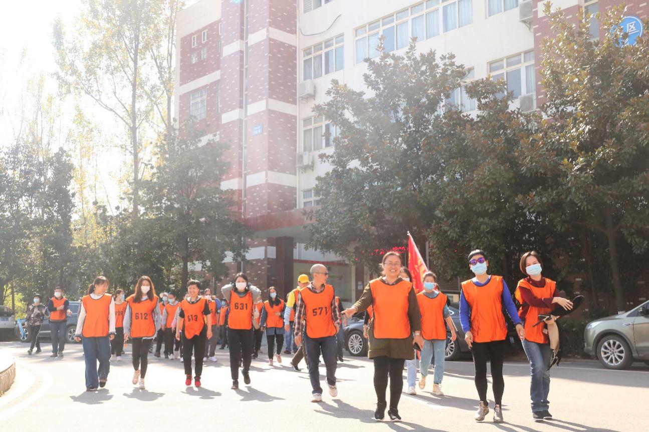 健走小队在学院门口集合整队完毕后,教职工冬季健步走拉开帷幕。