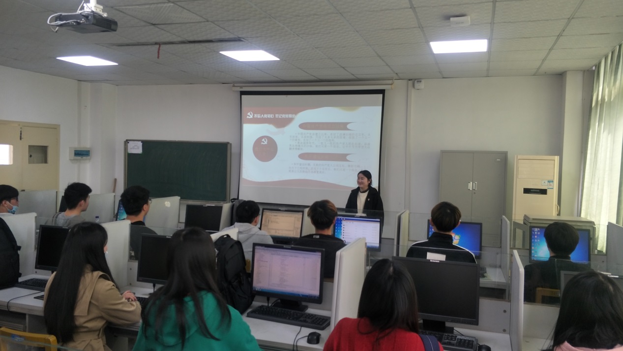 2018级软件工程(4)班预备党员范萱萱围绕《纪念建党一百周年》的主题,在北四智慧教室开展了演讲,声情并茂的回顾了党的光辉历程,讴歌了党的丰功伟绩,使团支部内的成员受到了教育,鼓舞了勇气,激励同学们继承和发扬党的光荣传统。展现了新时代青年与祖国同呼吸、共奋进的爱国主义情怀。