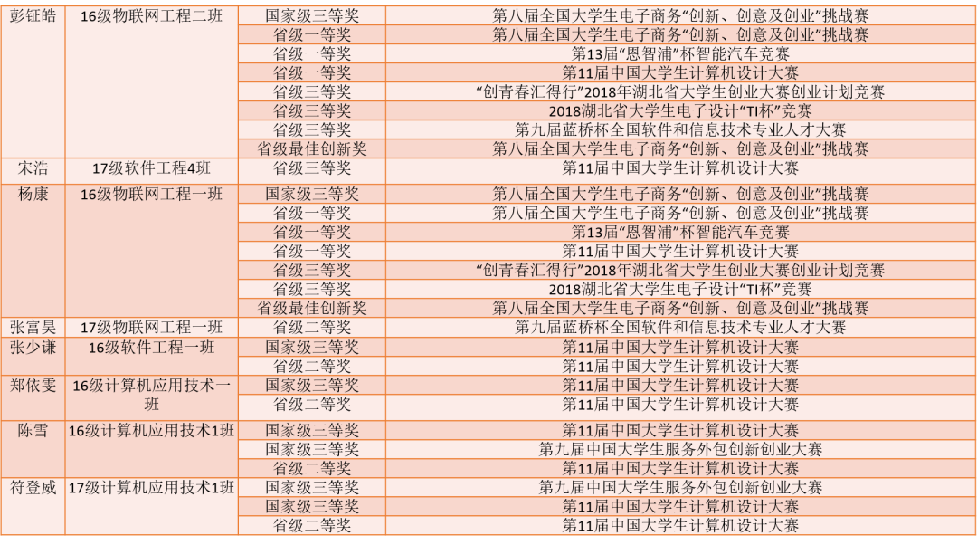 教学质量优良。重视学生实习就业工作,现有校外实习基地30余个,与OPPO广东移动通信有限公司、北京软通动力教育科技有限公司、武汉达内软件有限公司、武汉软帝信息科技有限责任公司、武汉极客营信息技术有限公司、中软国际教育科技集团等大型知名企业签订就业协议,毕业生就业率达到94.31%。学生在国家和省级学科竞赛中多次获奖,曾荣获全国应用型人才综合技能大赛全国一等奖;蓝桥杯全国软件和信息技术专业人才大赛全国一等奖;全国大学生大数据技能竞赛全国二等奖;大学生电子商务“创新、创意及创业”挑战赛全国二等奖;中国TRIZ杯大学生创新方法大赛全国三等奖;湖北省大学生信息技术创新大赛一等奖;湖北省大学生“互联网+”创新创业大赛铜奖;中国高校计算机大赛-团体程序设计天梯赛湖北省三等奖;全国大学生数学建模大赛湖北省一等奖;亚太地区(APMCM)数学建模比赛二等奖等奖项。