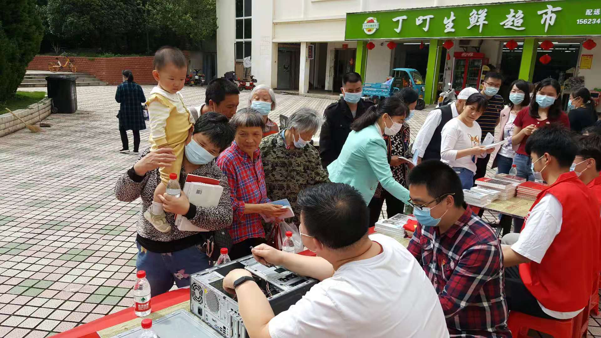 14时20分,永久社区党员服务中心广场上活跃着我们的师生党员代表们,同学们针对不同种类的书籍开展了推荐及赠送,老师们向对计算机感兴趣的孩子们科普计算机基础知识,并拿出电脑主机模型开展实物讲解。“学计算机就应该从娃娃抓起”,在和居民们的聊天的过程中,一位老师不禁感叹道。最终,所带100余本书籍全部赠送完毕。随后,我们走访慰问了孤寡老人,建立了社区孤寡老人联系表,并在社区书记的指引下,师生一同将中心广场打扫干净,坐上了返程的大巴。