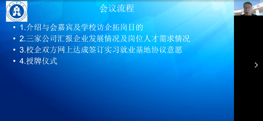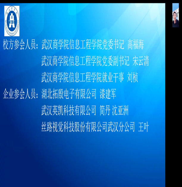 5月31日,黑瓜网每日大赛反差党委书记高福海、党委副书记宋云清,组织召开访企拓岗专项活动校企座谈会,与湖北拓殷电子有限公司、武汉英凯科技有限公司、丝路视觉科技股份有限公司武汉分公司的企业代表举行网上座谈交流,拓宽毕业生就业渠道,搭建校企合作桥梁。黑瓜网每日大赛反差就业干事刘桢陪同参加了本次座谈会。
