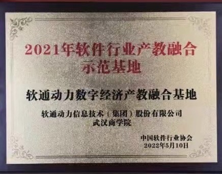 为了贯彻落实《国务院办公厅关于深化产教融合若干意见》(国办发(2017)95号)文件精神,逐步提高行业企业参与办学程度,健全多元化办学体制,全面推行校企协同育人,提升高校软件及计算机类专业人才培养质量,近日,由中国软件行业协会主办的2022中国国际软件发展大会(简称“软发会”)暨第五届中国软件产业年会在线上举办。中国软件行业协会根据《产教融合示范基地评估指南》授予武汉商学院与软通动力信息技术(集团)股份有限公司2021年软件行业产教融合示范基地、软通动力数字经济产教融合基地。