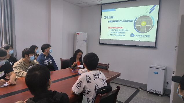 宋书记首先从中国共产党第一次全国代表大会,本次会议的主要内容包括学习中国共产党第一次全国代表大会的时间、地点、内容,中国共产党成立的历史特点和中国共产党成立的历史意义。在宋书记讲述的那一段段历史中塑造了老一辈革命家救亡图存的爱国精神、不畏艰险的奋斗精神、同舟共济的团结精神、勇于牺牲的奉献精神。一个个重要历史场景的逼真再现,一个个英雄人物的光辉事迹。