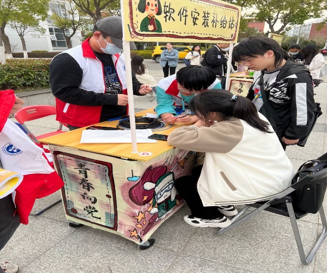 青协志愿者们在日上三竿的正午和红日西斜的下午来到北区食堂前开始准备电脑软件安装活动,并运用专业知识开展志愿服务活动,志愿服务活动包括系统软件安装和现场答疑与网线制作三个方面,可以为同学们解决生活中遇到的电脑问题。