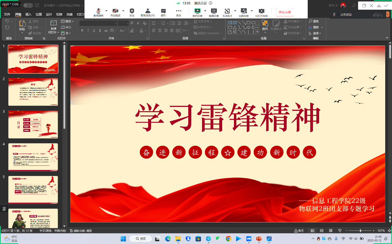 每个团支部都积极组织准备,通过观看雷锋同志教育视频、主题征文演讲、PPT呈现学习等形式开展,在提升班级凝聚力的同时更好地传承雷锋精神。