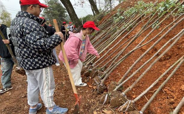 挖坑、栽植、填土、浇水、覆土,各个环节衔接有序,现场一派热火朝天的景象,师生在劳动中诠释对大自然的热爱,为初春林场增添了一份生机,为春天增添了一抹绿意。