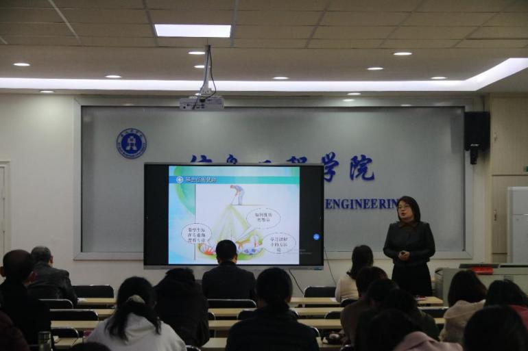 接下来,由优秀辅导员刘桢、优秀班主任金振坤、姜攀依次作经验分享。刘桢老师用他的真心、爱心和耐心,成为了学生眼中“有速度、有温度、有态度的‘刘爸爸’”,“心有学生方能致远”不仅仅是刘桢老师经验分享的主题,也是他在辅导员工作中奉行的准则。金振坤老师分享了自己担任班主任的心路历程,从拒绝未知到观察学习身边榜样到敢于接受挑战。她以抓专业学习为突破口,带领学生站在专业角度看专业,强调学习过程中的方法论,还善于发挥学生的“传帮带”作用。姜攀老师从做好思想政治工作、加强班团干部管理、关爱学生发展、紧抓学生学习、紧密联系辅导员、任课教师五个方面作了经验交流。