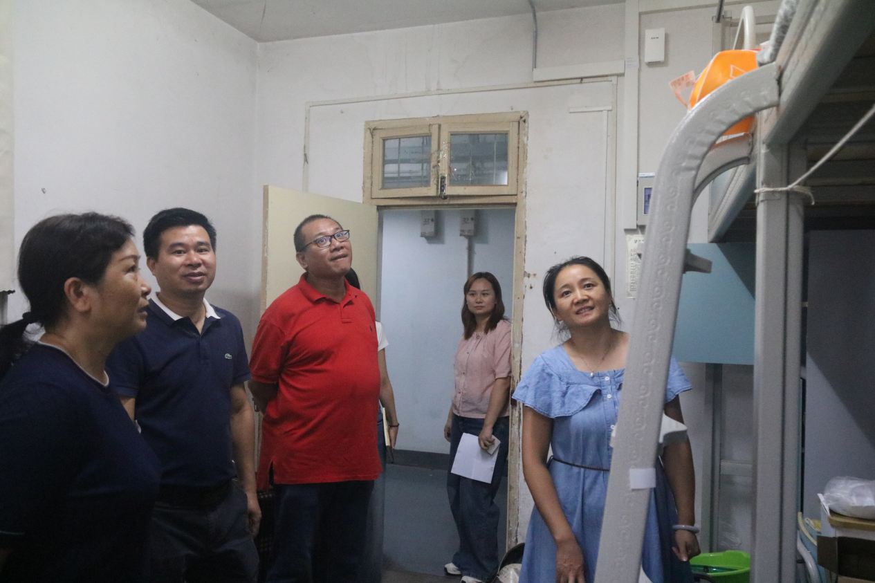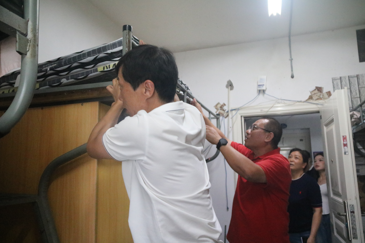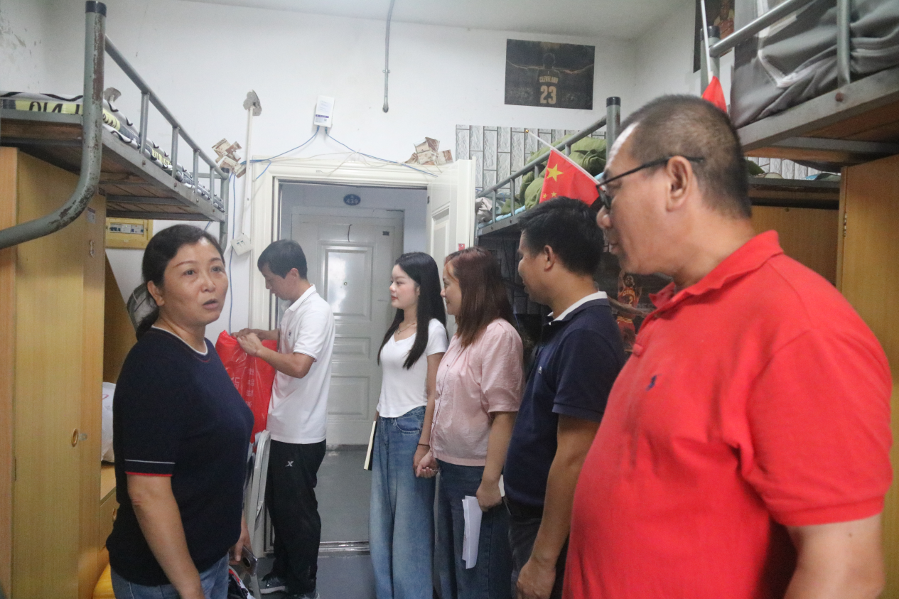 学院领导先是走访了住在北区观六的新生。对于他们而言,和学长们住在同一个寝室或许是一段特殊的经历,学长们的丰富经验却能帮助他们快速适应大学生活。