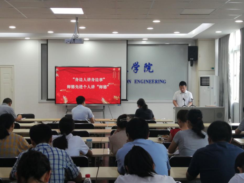 会上,首先由师德先进个人姜攀老师分别从“以严谨之心对待教学”、“以包容之心对待学生”、“以真诚之心对待同事”、“以敬畏之心对待工作”四个方面分享了从教以来的心得和体会。
