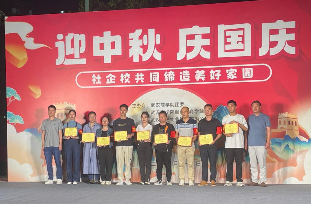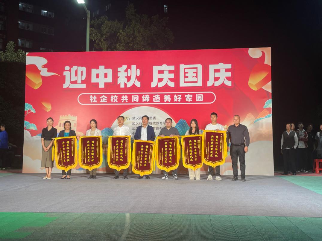 2023年9月25日,武汉经济技术开发区沌阳街全力北职工社区举行迎中秋、庆国庆文艺表演暨表彰大会,武汉商学院信息工程党委获评社区共建工作“组织先进集体”并授锦旗,宋云清 、姜攀两位同志被授予“最美下沉党员”荣誉称号。到会党员干部一同观看了精彩纷呈的“迎中秋、庆国庆”文艺表演,与社区党总支进一步加深了合作交流。