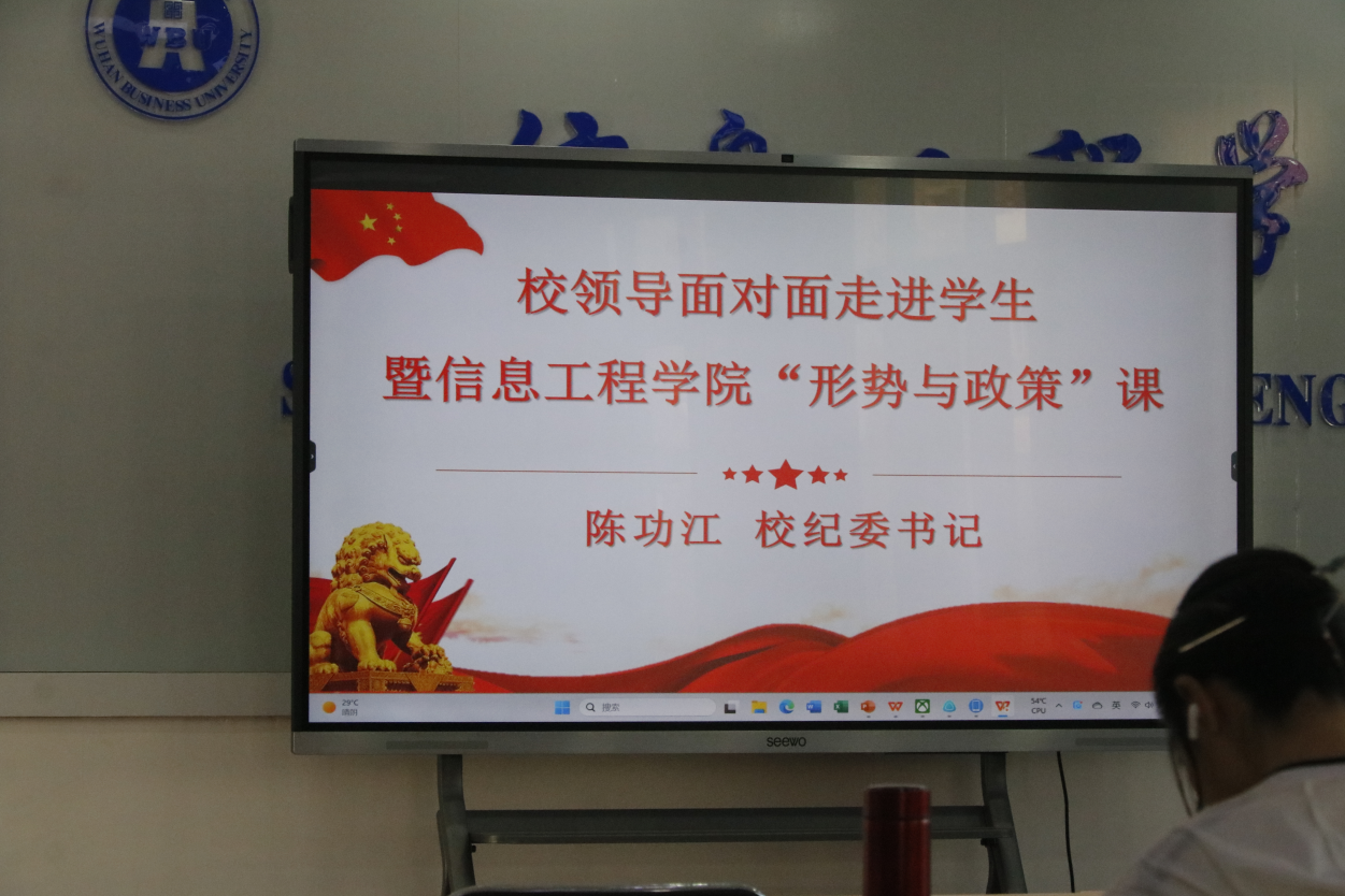 11月2日下午,在黑瓜网每日大赛反差南二401会议室,我校纪委书记、监察专员陈功江博士以“学总书记,扣好人生第一粒扣子”为题给2023级同学们带来一节富有思想性、理论性又润物无声的“形势与政策”思政课。我院党委书记黄美忠、学生管理办公室负责人刘炼、辅导员鲁智丹参加旁听。