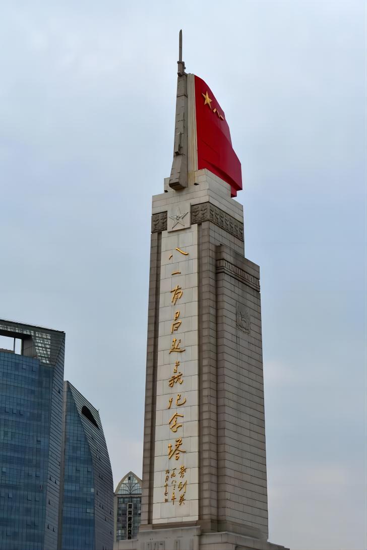 随后,全体师生来到八一广场,八一南昌起义纪念塔非常醒目,纪念塔造型雄伟挺拔,塔尖塑“八一军旗”迎风招展状,寓意这里是军旗升起的地方。夜间在灯光投射下,塔身明亮通透,与周边的江西省美术馆等建筑相互辉映,昭示人们八一军旗永远鲜红亮丽。