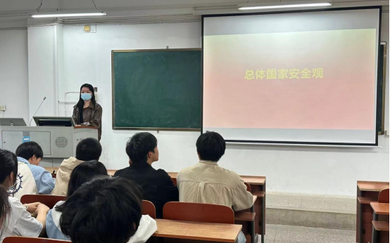 协会指导老师杜先芸从同学们的成长经历与安全息息相关导入课程,结合传统与现代、历史与现实、国际与国内、形势与政策,紧扣大学生的关切,主要讲授三个方面的问题:一是为什么说保证国家安全是头等大事,从中华优秀传统文化关于安全的丰富思想元素谈起,说明安全基础不牢发展大厦地动山摇的道理,说明国家安全是人民的期盼,是人民群众的根本利益关切,党的十八大以来,国家安全经受了来自多方面的风险与考验,维护国家安全的民心基础更加牢固。二是从总体国家安全观的内涵入手,阐释总体国家安全观是新时代维护国家安全的根本遵循和行动指南。杜老师深入讲解了总体国家安全观的丰富内涵,重点是四个“强调”,即强调大安全理念、强调科学统筹、强调打总体战、强调统筹发展和安全两件大事。三是讲授新时代维护国家安全的实践要求,即怎样推进国家安全体系和能力现代化,包括健全国家安全体系和增强国家安全能力建设及提高防范化解重大风险的能力两个方面。
