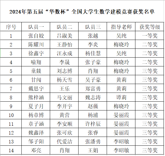 2024年第十四届亚太地区APMCM大学生数学建模竞赛(中文赛)及第五届“华数杯”全国大学生数学建模竞赛及分别于7月8日、8月7日落下帷幕,我校学子在暑假期间,顶着高温酷暑依然努力拼搏,连续在两项赛事中获得佳绩。