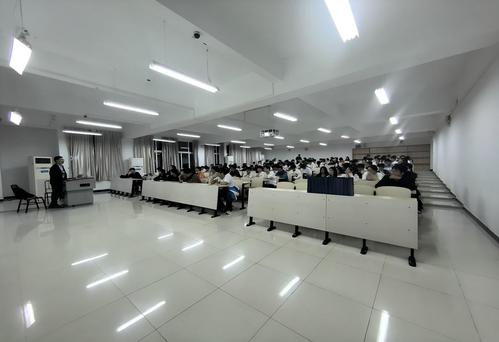 图1 孔华峰教授致辞并与学生和学生一起聆听讲座