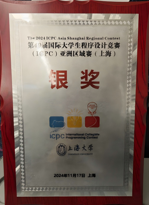 图1 第49届国际大学生程序设计竞赛(ICPC)亚洲区域赛(上海)获银奖