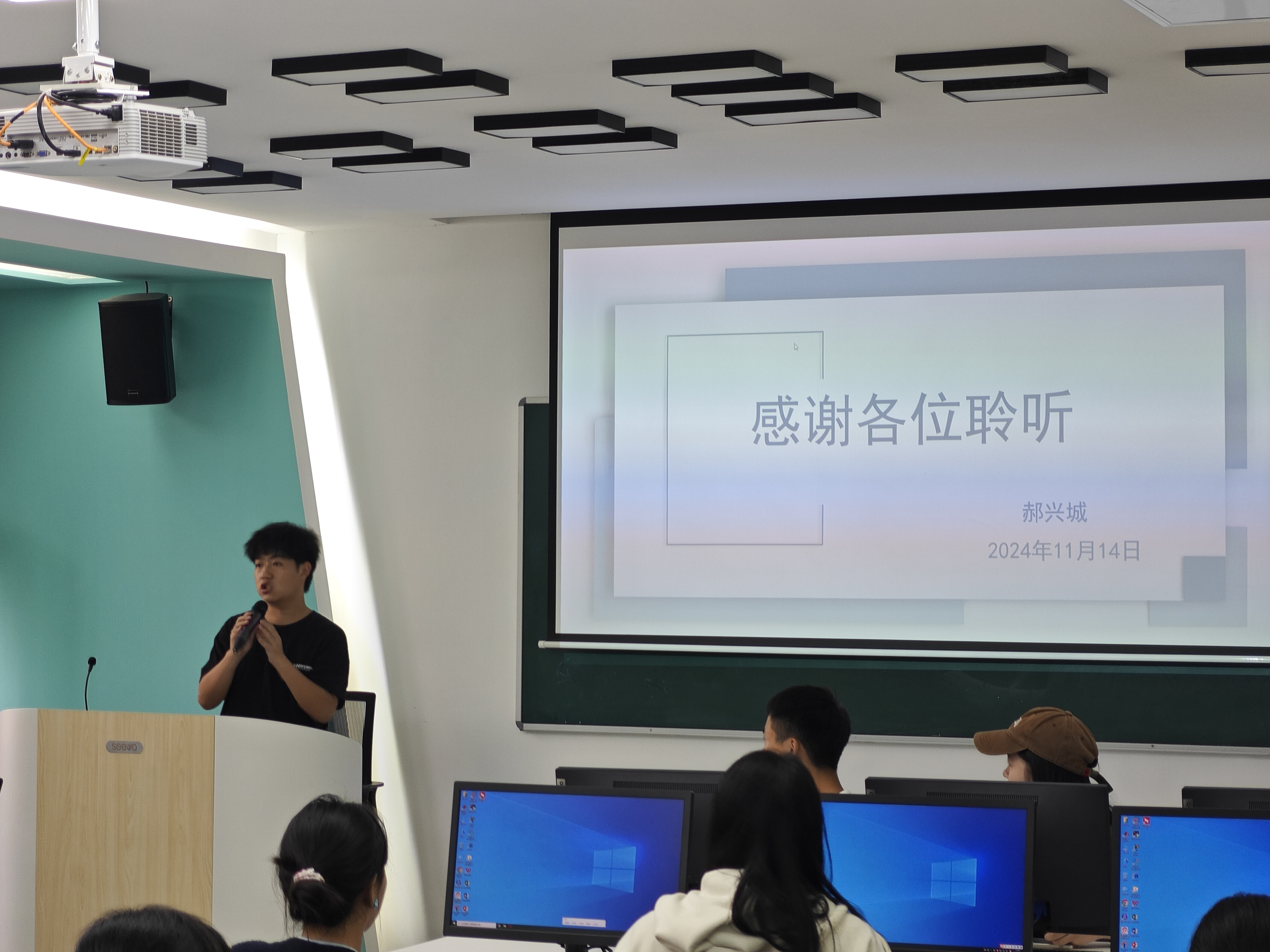 随后,徐鑫宇学长上台为大家带来了关于考研和工作的经验分享。他结合自己的亲身经历,为大家指出了未来的发展方向。徐鑫宇学长详细介绍了考研的备考策略、择校建议以及面试技巧等方面的内容。他的分享让在场的同学们受益匪浅,为大家指明了未来的道路。