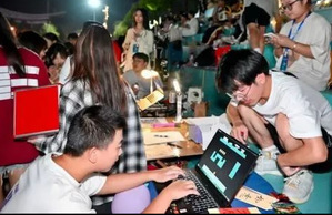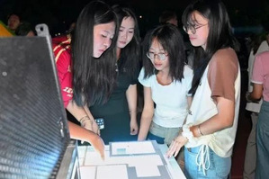 嘉年华现场,从场地布置到游戏介绍,信息电子协会的工作人员都展现出洋溢的热情。编程游戏区成为了新生们的热门打卡地。在这里,他们通过简单的编程语言,控制角色完成一个个趣味任务,体验从逻辑构建到代码实现的成就感。紧接着,硬件游戏区更是吸引了众多热爱动手的新生。LED灯的闪烁,让他们感受到了硬件设计的无限魅力。在奖品设置上,信息电子协会设计了一款集传统文化与现代科技相结合的特色书签,书签正面为软笔书法题字而成,背面附有NFC芯片,书签靠近手机便可实现页面跳转,游戏参与者均对这一设计赞不绝口。
