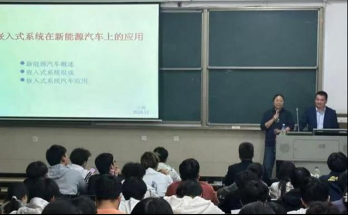图10 信息电子协会指导老师与邀请嘉宾讲解嵌入式系统在新能源汽车上的应用