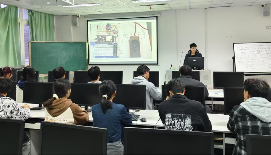 此次活动的知识分享者是24 级软工一班的张涵同学。在社团指导老师黄晓的悉心引导下,张涵同学对开发基于 ESP32 的 “小智” 智能 AI 语音助手产生了浓厚兴趣,并通过深入钻研,成功实现了预期的智能语音交互功能。活动现场,张涵同学详细分享了制作过程与心得体验,还展示了与 “小智” 智能 AI 语音助手的精彩对话,引发了在场同学的热烈反响,现场气氛十分活跃。