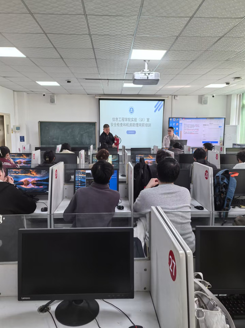 最后,李川老师就实验室安全管理作了详细说明。他从用电安全、消防安全、应急疏散等方面,强调了安全管理的重要性,演示了安全设备的正确使用方法,并对应急处理流程进行了培训。李老师要求所有机房助理熟悉紧急情况处置流程,掌握基本安全技能,确保在意外情况发生时能够妥善处理。