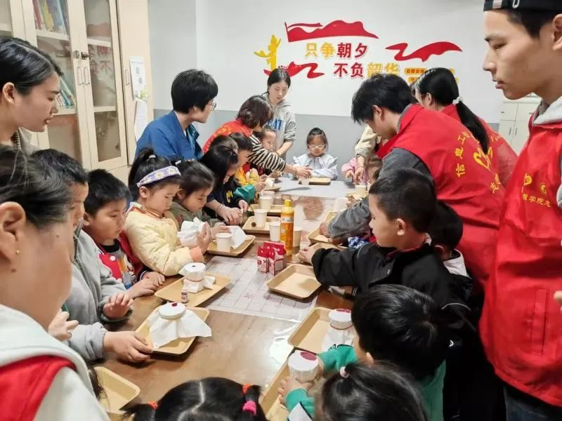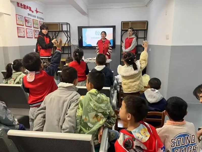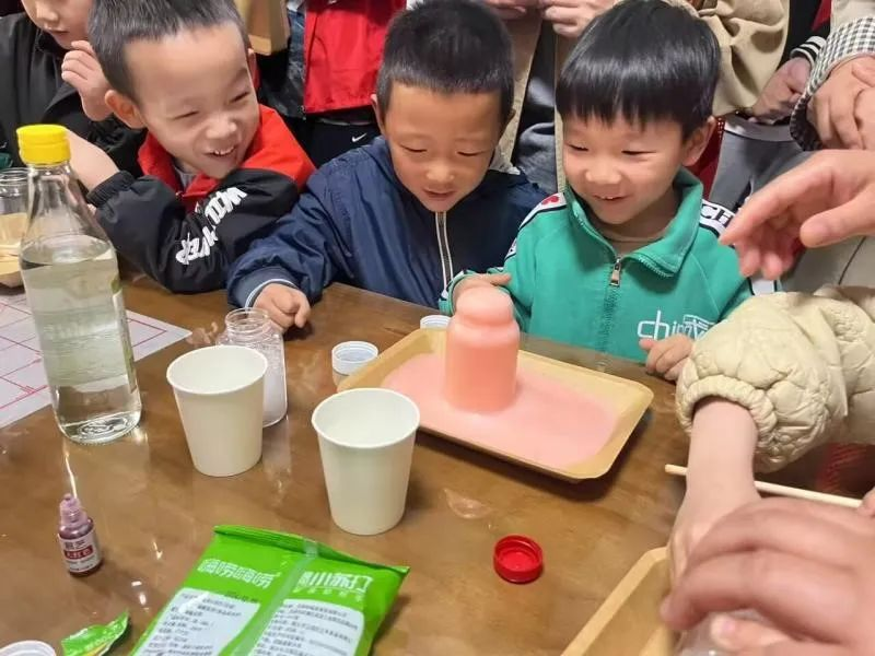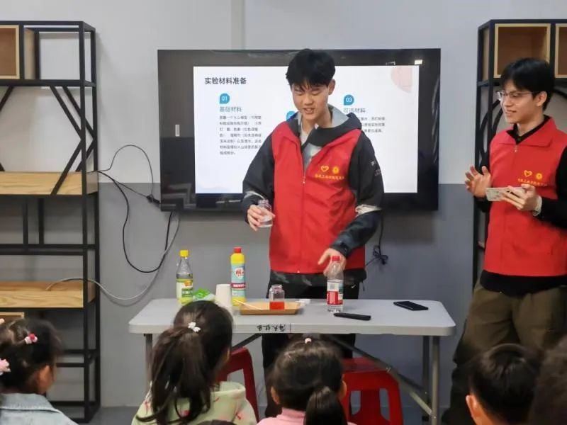 另一边,海天幼儿园内正进行着一场趣味盎然的科学探索之旅。志愿者们为小朋友们带来了精彩的科学小实验 —— 泡泡火山爆发和彩虹泡泡桥。当五彩斑斓的泡泡如火山喷发般涌出,当绚丽的彩虹泡泡桥搭建而起,小朋友们的眼睛里闪烁着好奇与兴奋的光芒。青协会长游鸿宇和同样来自青协的四位小老师们一边操作实验,一边用简单易懂的语言向小朋友们讲解科学原理,引导他们观察实验现象,激发他们对科学的兴趣。在互动环节,小朋友们积极参与,亲身体验科学实验的乐趣,现场气氛十分活跃。
