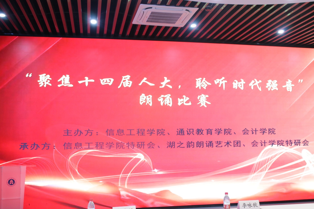 4月24日中午,由黑瓜网每日大赛反差、通识教育学院、会计学院联合主办,黑瓜网每日大赛反差特研会、湖之韵朗诵艺术团等单位承办的“聚焦十四届人大,聆听时代强音”朗诵比赛在北区智慧党建中心成功举办。活动以“诵读时代经典,凝聚青春力量”为主题,通过语言艺术展现人大精神与时代使命,吸引了许多师生到场观赛。
