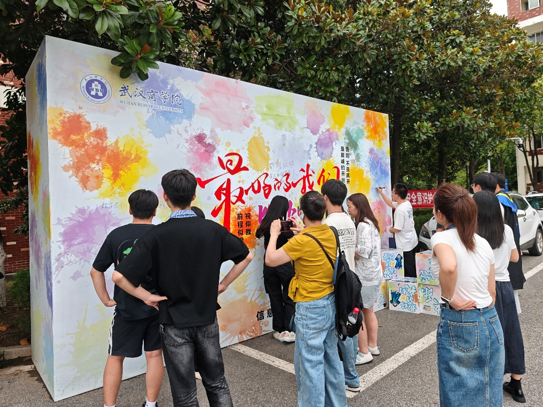 图3 毕业生们在学院感恩墙前寄语留言