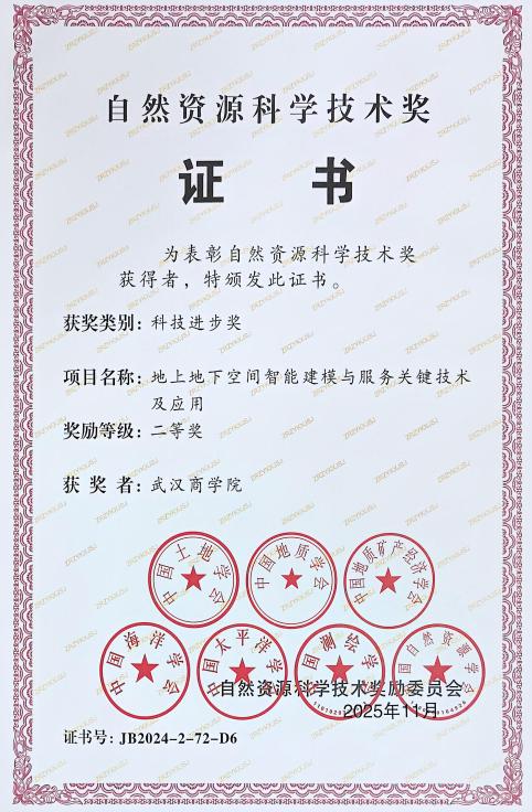 人工智能与大数据学院谢雪景博士和胡安娜博士与中国地质大学(武汉)、武汉中地数码科技有限公司等单位联合申报的“地上地下空间智能建模与服务关键技术及应用”成果面向数字中国和智慧城市建设的重大需求,通过多学科交叉融合与自主创新,突破了空间建模与智能化服务的关键技术,研制了自主可控的智能化空间建模软件系统,并在多个领域实现了规模化应用。项目成果经济社会效益显著,已成功应用于广东、山东、湖北、湖南等地的智慧城市建设、国土空间规划、地下资源开发及地质灾害应急响应等领域,形成了覆盖多行业的示范应用体系。